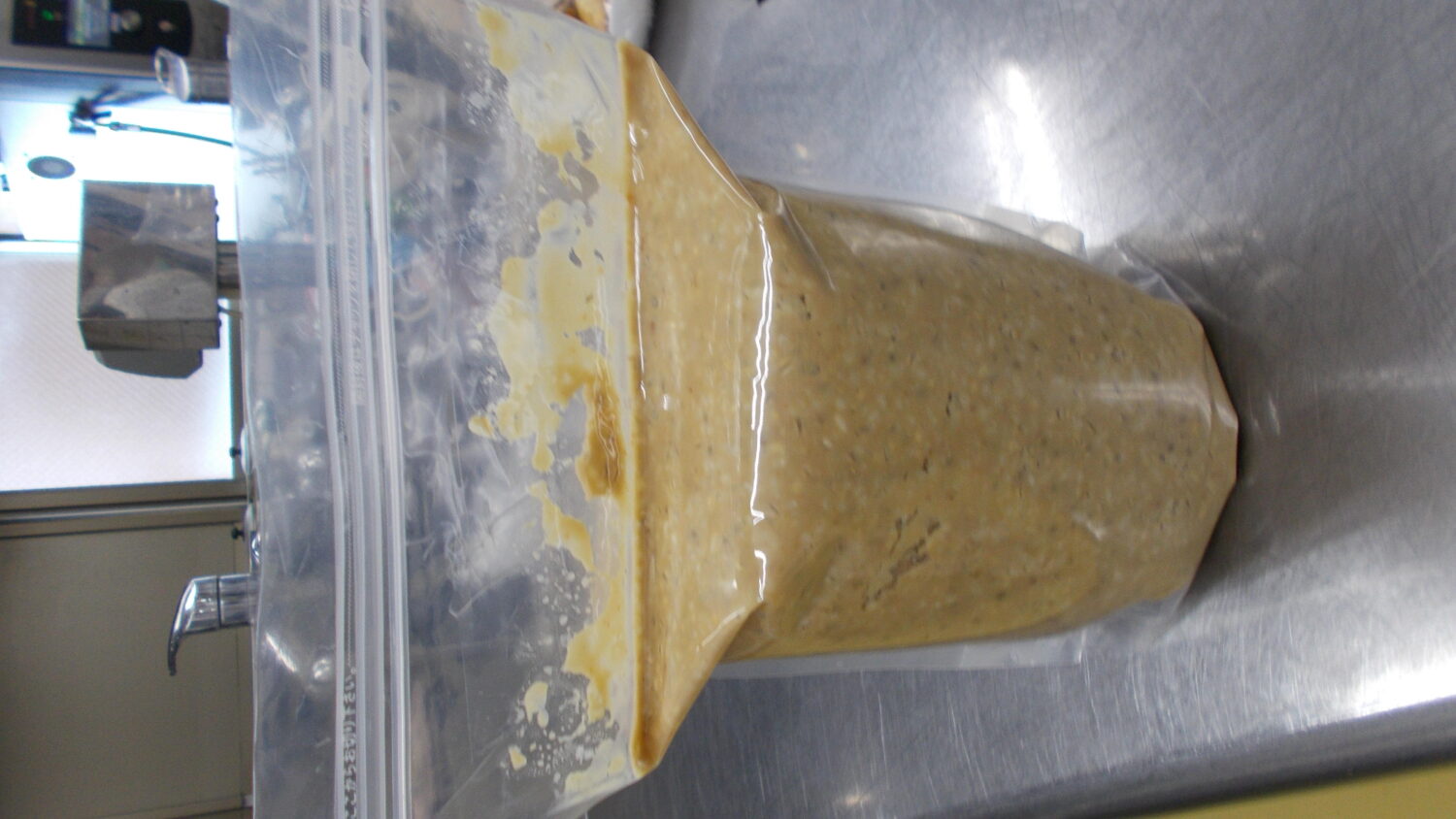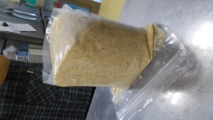 熟成温度は27℃前後が理想だそうです。置くときは袋を横に寝かせ週に1回は上下を変えてるようにします。どのように変化していくか楽しみです!ブログにも載せていきたいと思います。