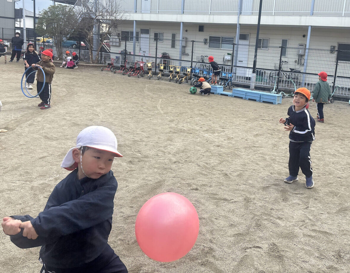 晴れた日は園庭で鬼ごっこやボール遊びをして、みんな元気いっぱい走り回りました。