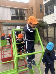 滑り台横の木登りもいっぱい練習して上手に登れるようになってきました♪