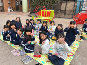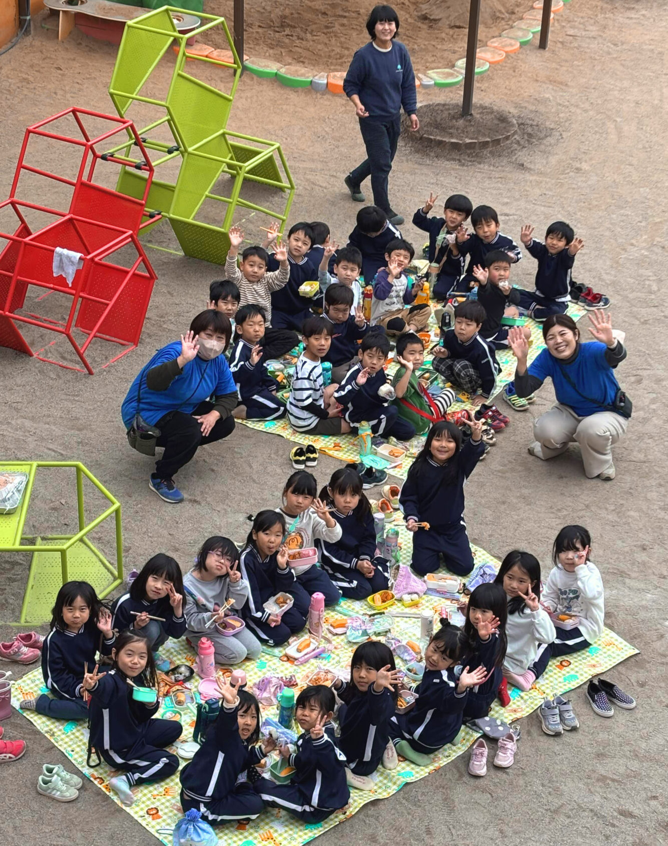 折角なので、少し寒かったけど、この日は園庭で食べることにしました。