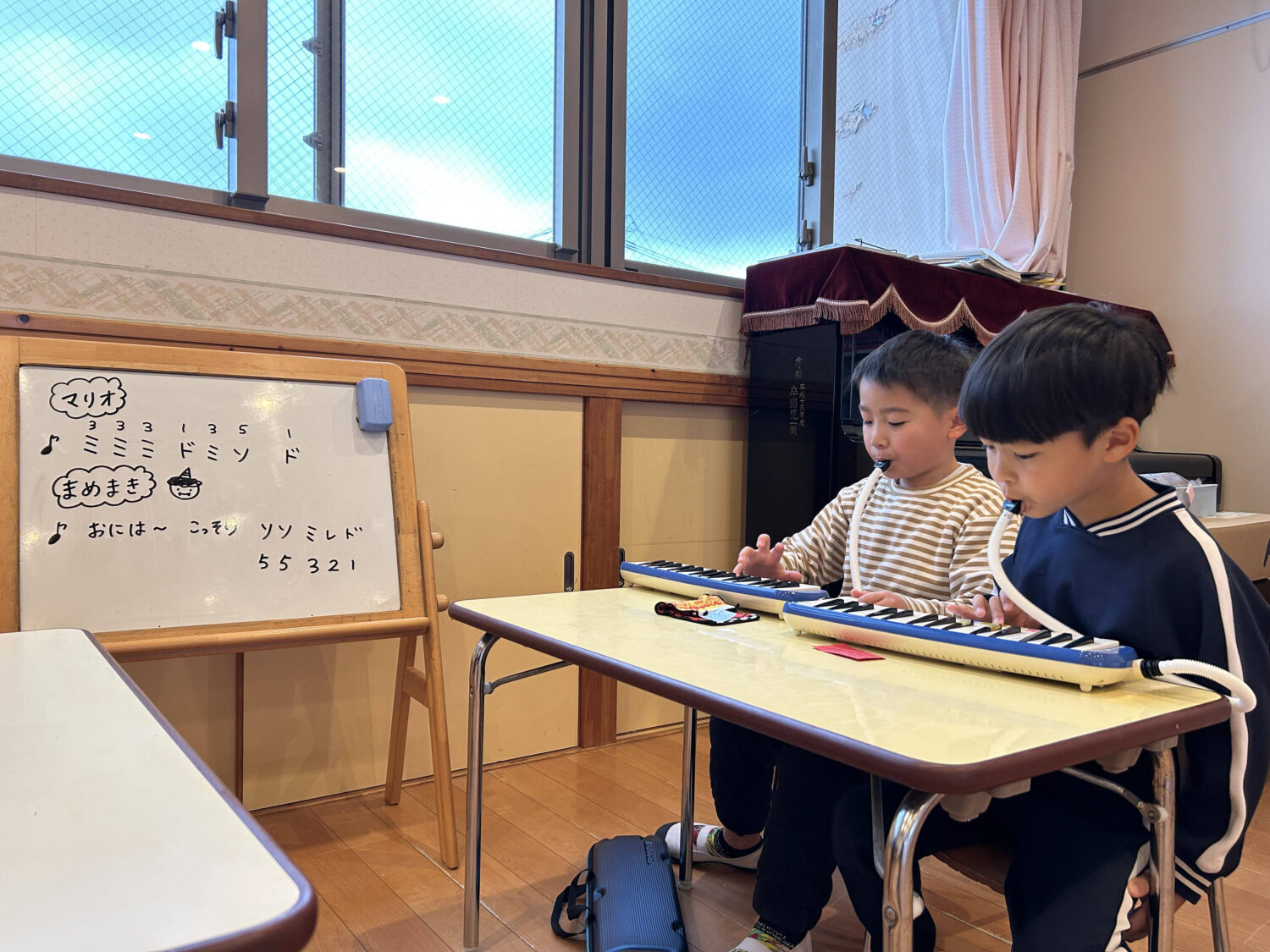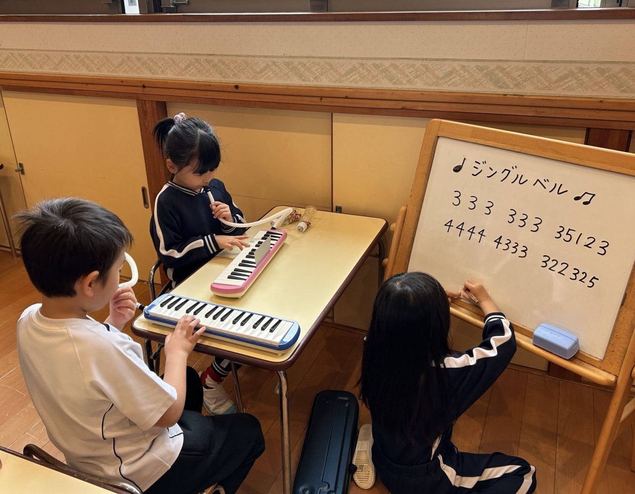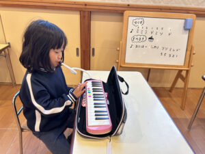 音楽教室の時間には、きょうこ先生から鍵盤ハーモニカを教えていただいています。