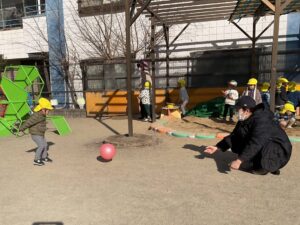 戸外では、広い園庭でボール遊びや砂遊びを楽しみました。