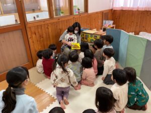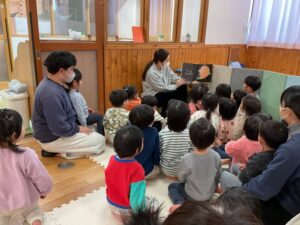 室内では、絵本の読み聞かせに自然と子どもたちが集まり、静かに耳を傾ける様子が印象的でした。