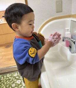 「アワ🫧 アワ🫧 アワワ~🎵」口ずさみながら上手に手洗いしてます😄