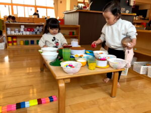 子ども達の関わりも一層深まり、今日も楽しい食卓を囲んで遊ぶ姿が見られました。