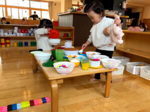 もうすぐ2歳児クラスに進む子どもたちにとって、こうした“じっくり遊び込む経験”は、これからのごっこ遊びや友だちとのやりとりにつながっていく大切な土台になるのではないかと思います。