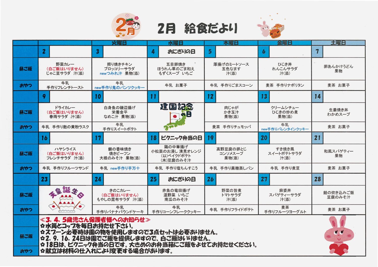 2月の給食献立