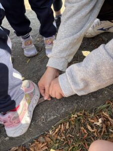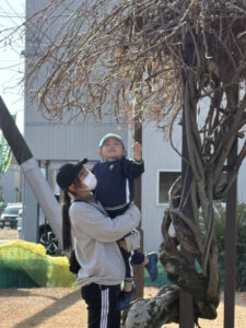 この日は「タイヤ公園に行ってみたいな‼️」と話すひまわり組さんを誘い、一緒に公園までお散歩に出かけました。