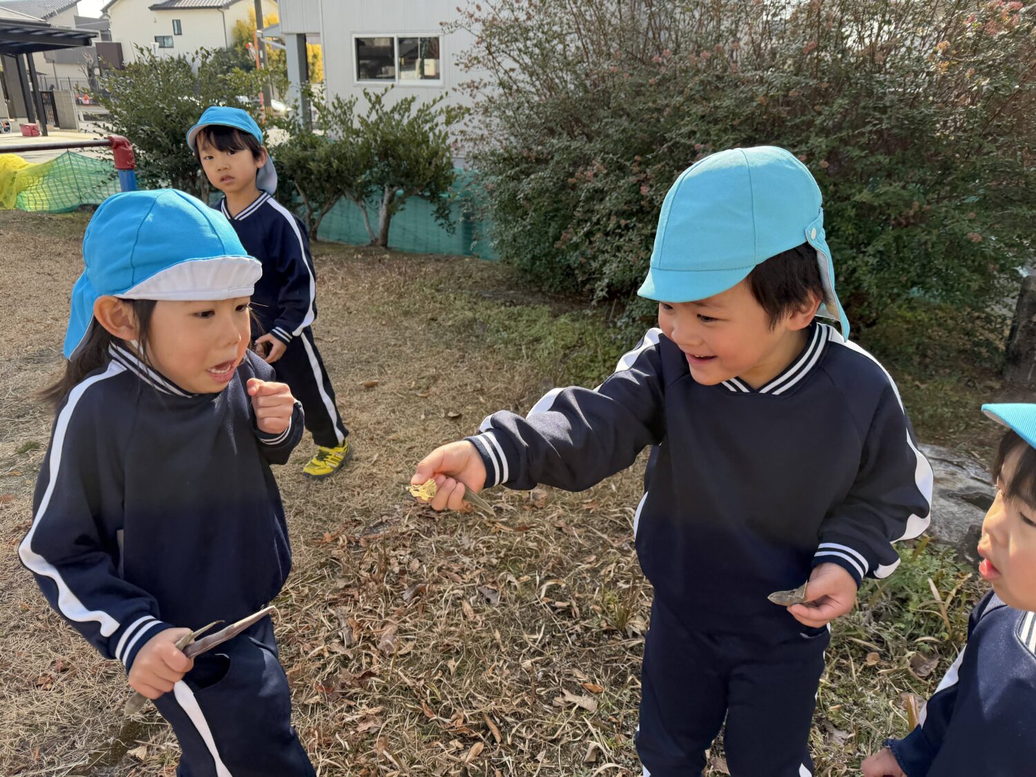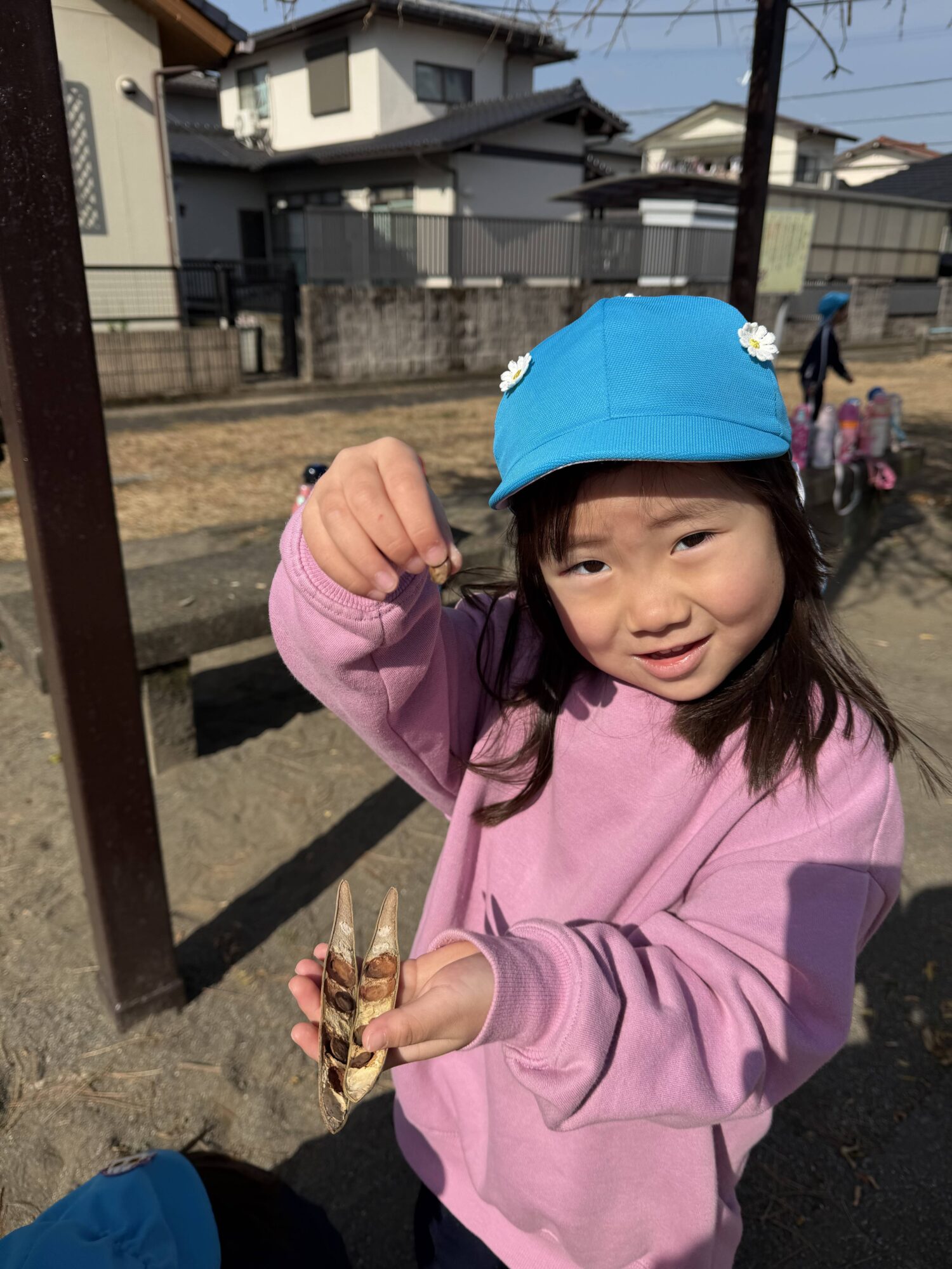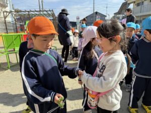 ひまわり組さんに公園で見つけたマメをお裾分け!