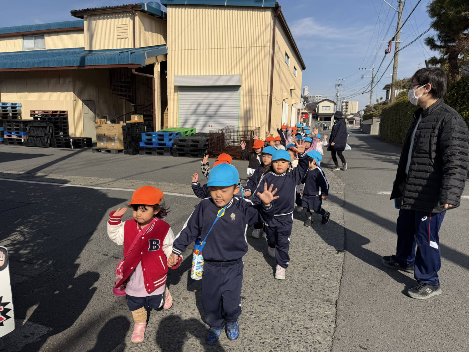 ✋手を真っ直ぐ上げて、しっかり車から見えるようにしてね!