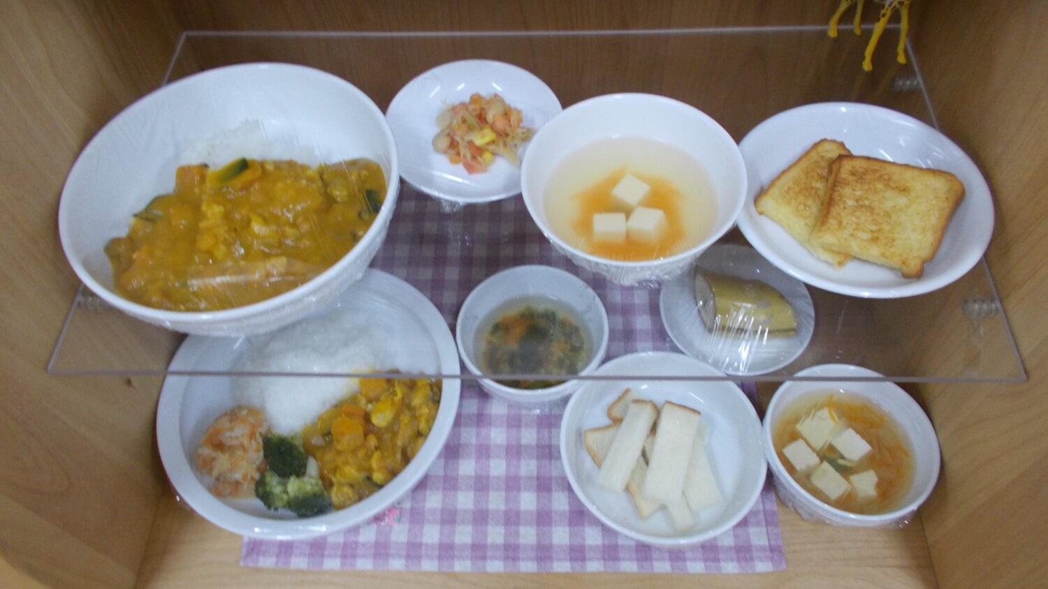 じゃこ豆サラダには、ちりめんじゃこ、蒸し大豆、キャベツ、人参、コーン、トマト、酢、濃口、砂糖を使用しています。ちりめんじゃこはフライパンでしっかりと炒めてから混ぜるので、味が際立っていました。
