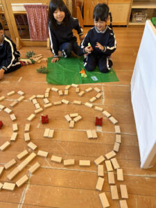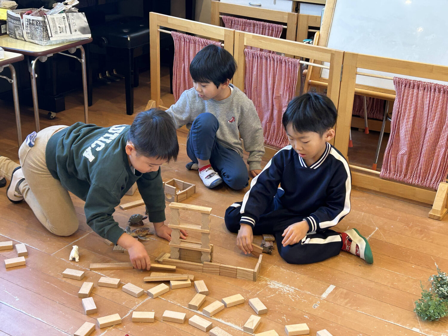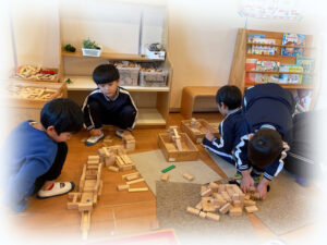 ある日のゆり組のお部屋では、積木遊びに没頭する子ども達の姿がありました。