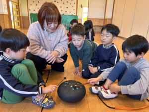 きょうこ先生は、毎回珍しい楽器を紹介してくださるので、子ども達も楽しく参加していますよ!