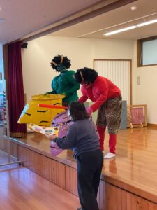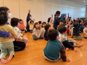 ちゅうりっぷ組さんは、以上児さんと一緒に節分の行事に参加しました。