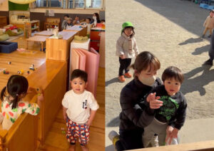 戸外あそびから帰ってきているお友だちも、鬼さんとばったり遭遇しタッチをしてきたそうですよ!