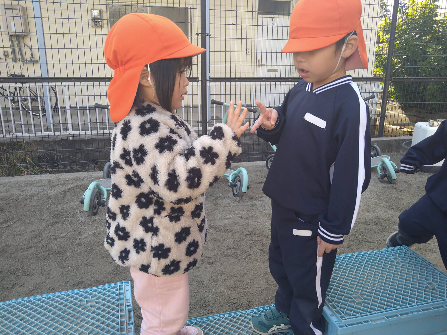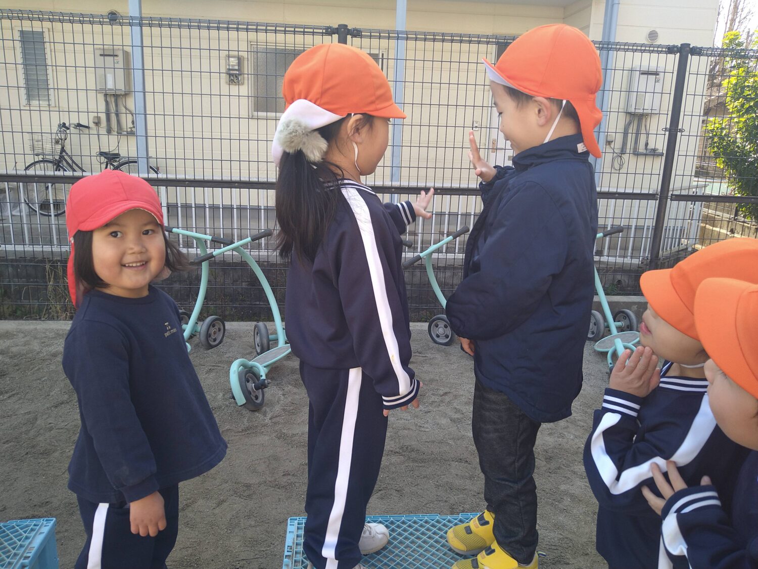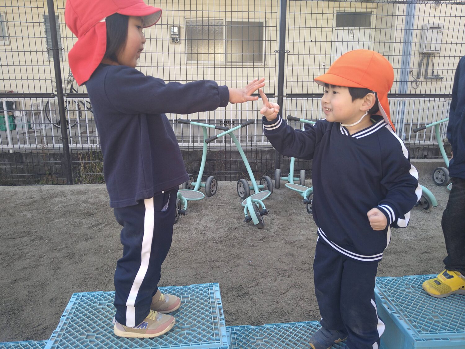 前回は、箱型の飛び石を渡る遊びをしていましたが、今回はじゃんけん遊びを楽しんでいました🌟