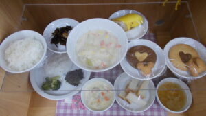 明日はバレンタインなので、1日早いですがおやつにバレンタインクッキーを提供しています🍪🍫