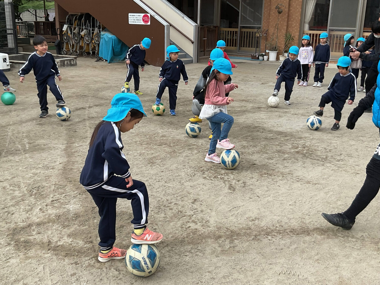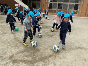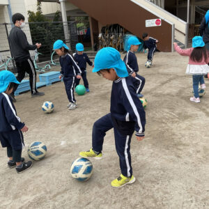 今月より体操教室では戸外でサッカーに挑戦します。