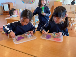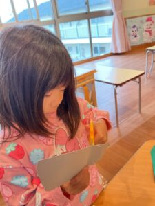 ハサミ✂️を使ってチョキチョキ。