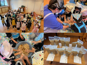 池田屋醸造から講師の先生(味噌博士)に来ていただき、味噌づくり体験をしました。