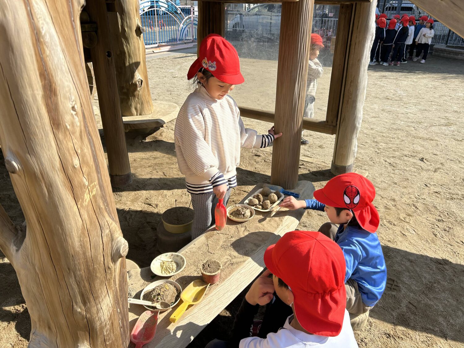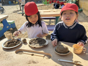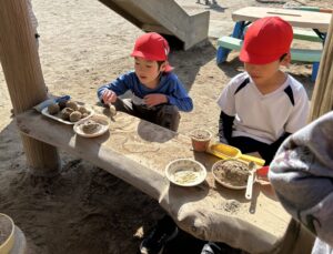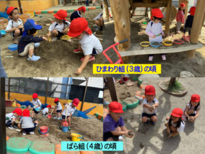 砂遊びやおままごと遊びは小さい頃から楽しんできましたが、年長さんともなると対象がより目的化して組織的になってきましたね。