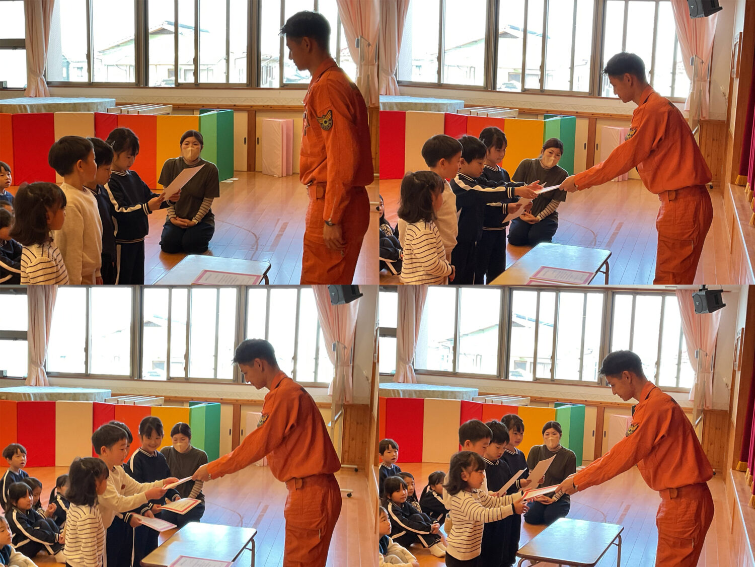 南消防署🚒から3名の消防士さんが来園され、ゆり組幼年消防クラブの解散式が行われました。