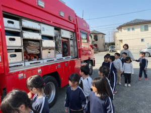 普段はなかなか見られない消防車を、興味深く見入っていた子ども達でした。😃