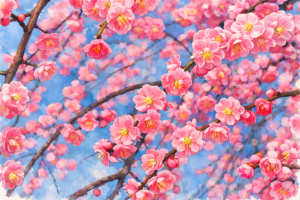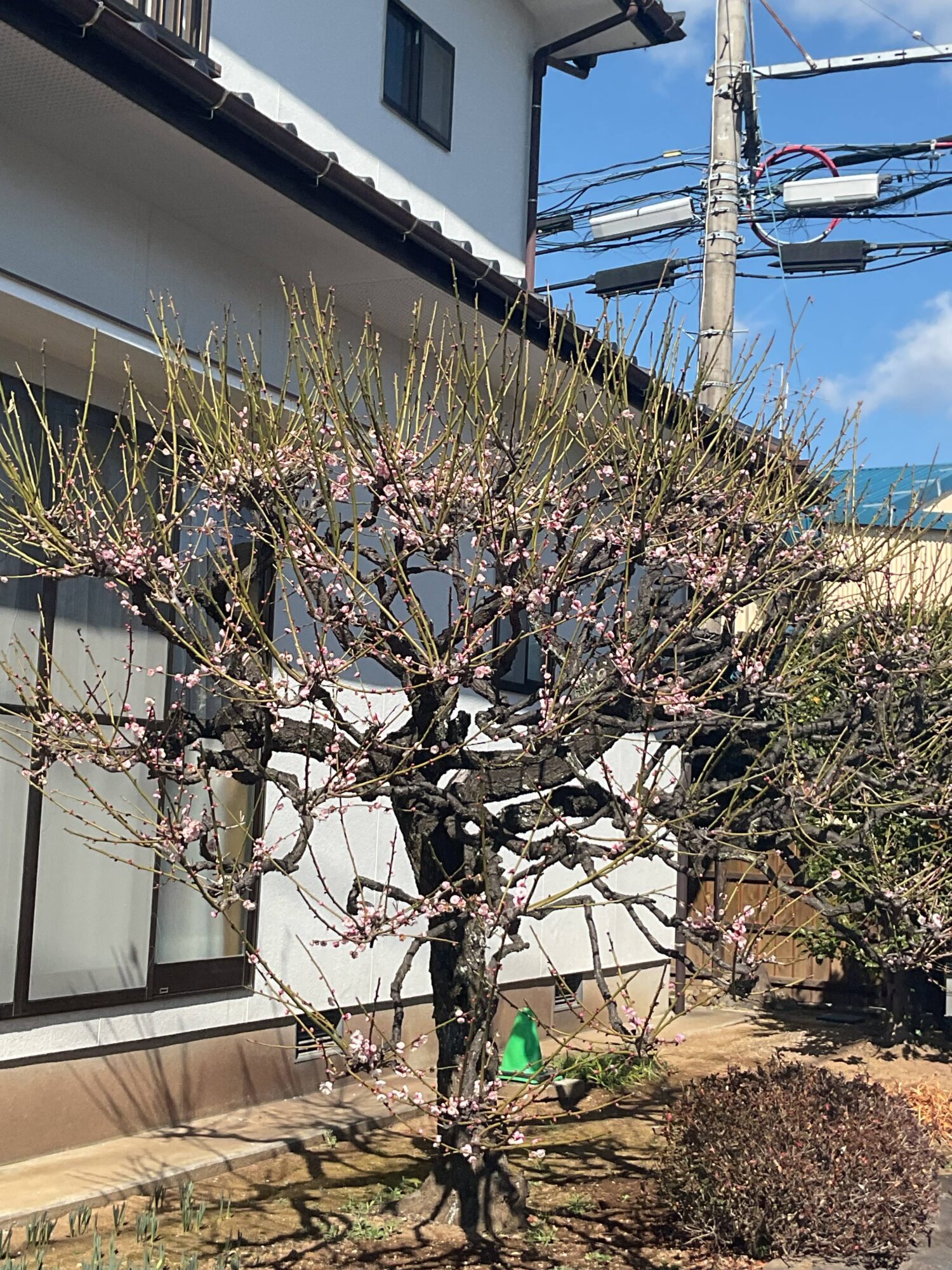 途中、民家の庭に咲く梅の花に春を感じながら目的地へ…