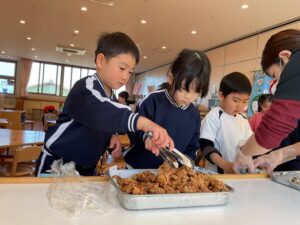 👦🏻「給食室についたら大きな声であいさつするんだよ!」