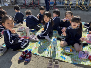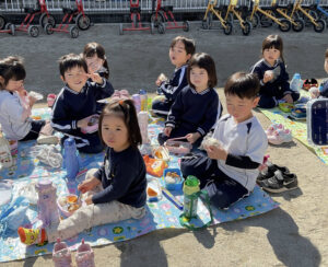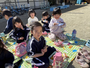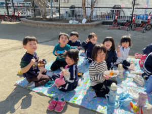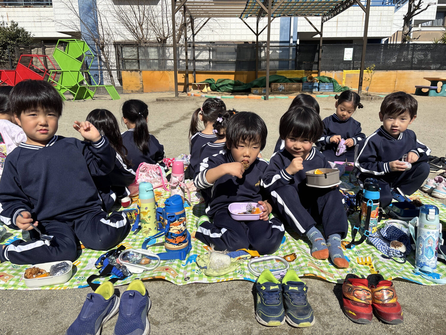 今週のピクニック弁当は、ぽかぽかとした気持ちの良いお天気だったので、みんなで園庭に出ていただきました🍱