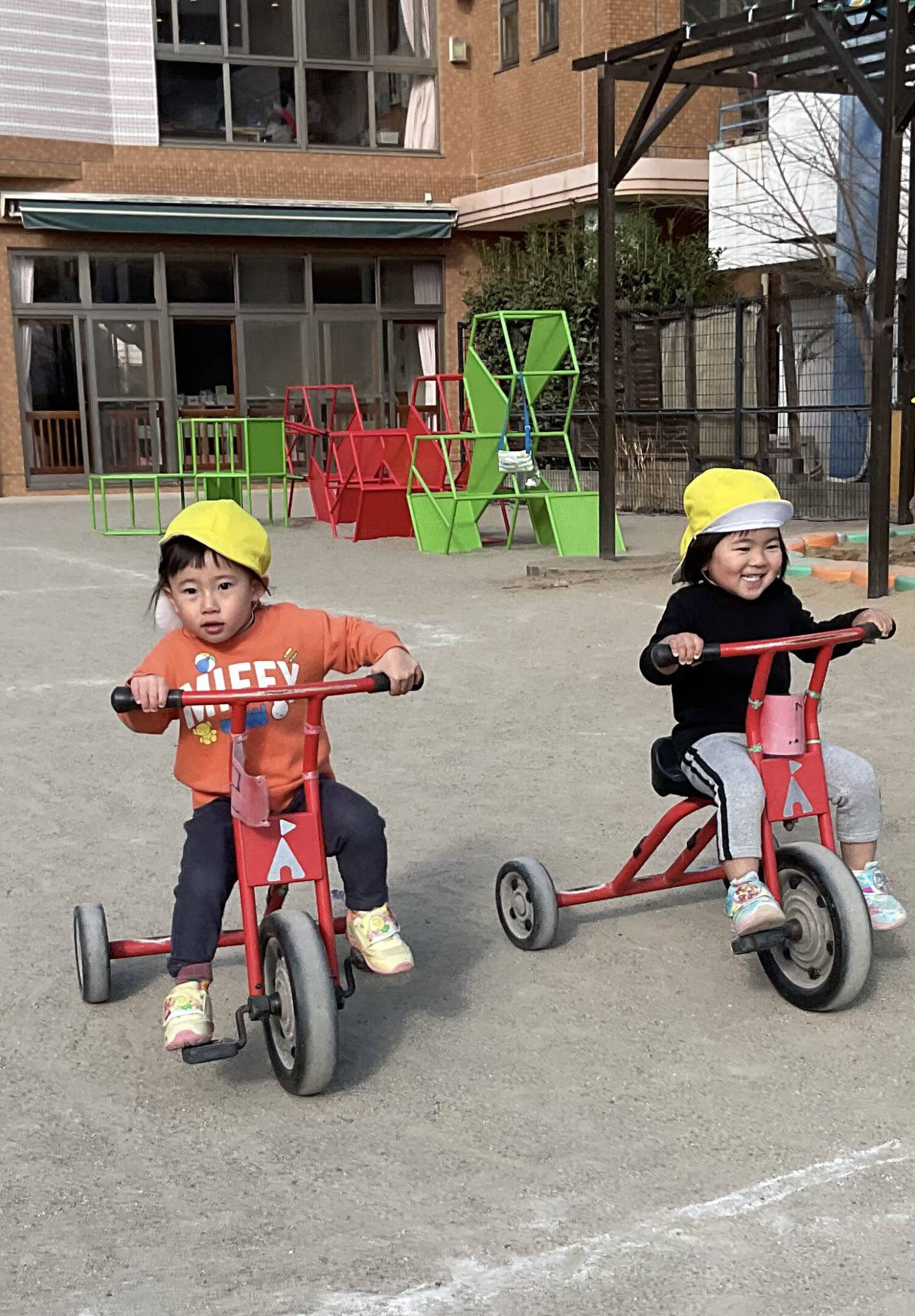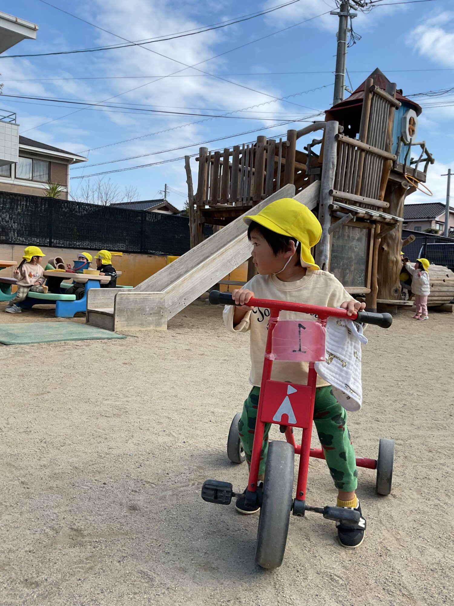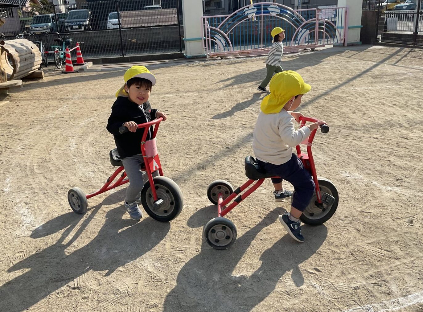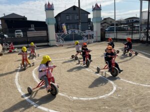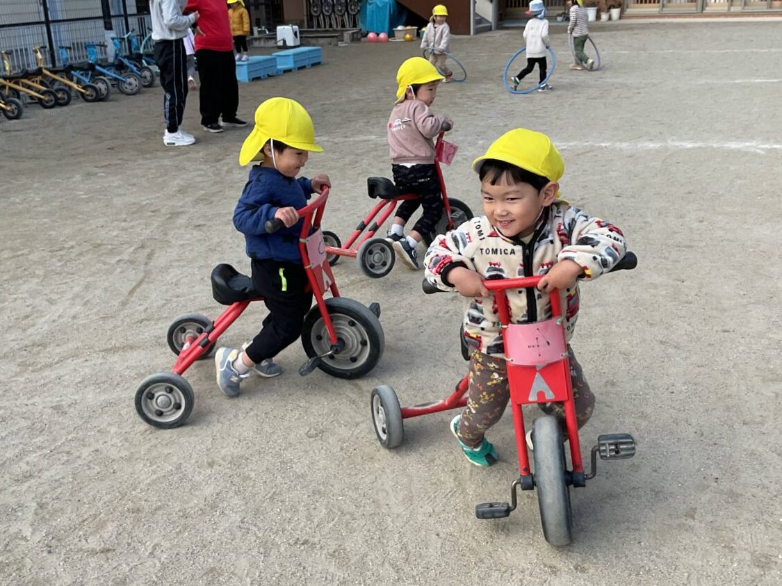 三輪車遊びでも、子ども達は元気いっぱい!