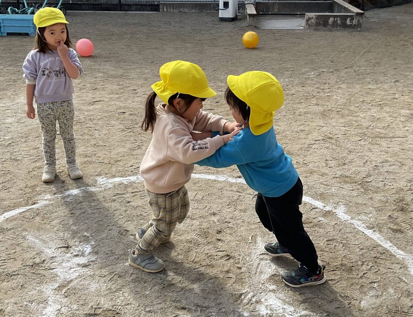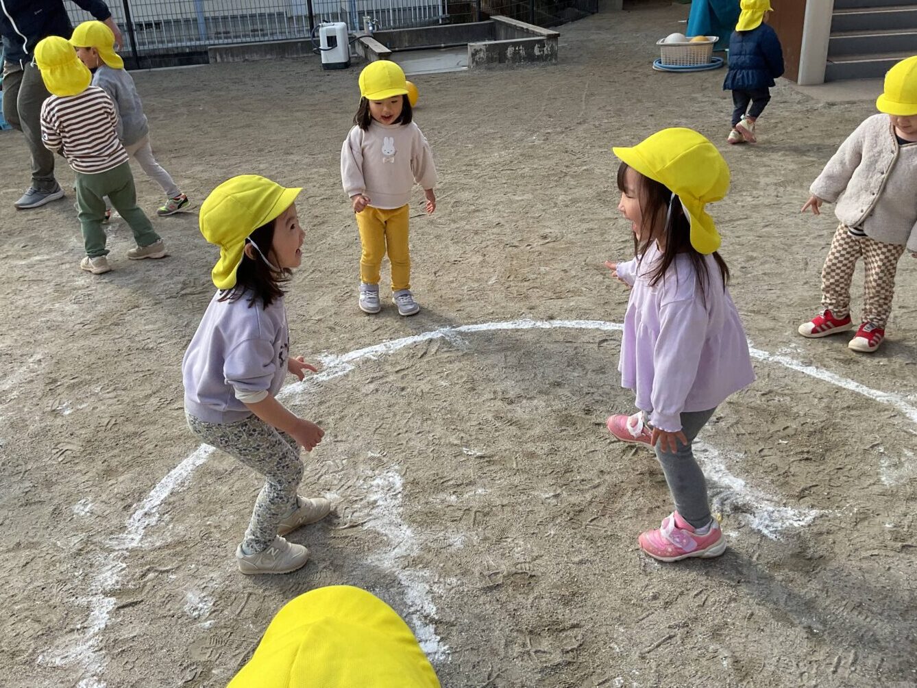園庭では、他にもいろいろな遊びに興じる子ども達の姿も…