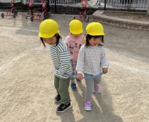 前の子を追いかけてみたり…お互いに関わり合って遊ぶ姿が見られました。
