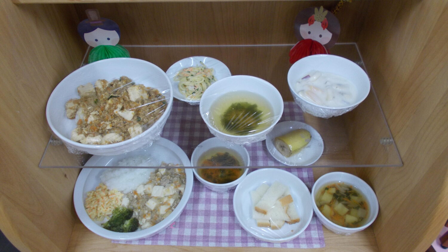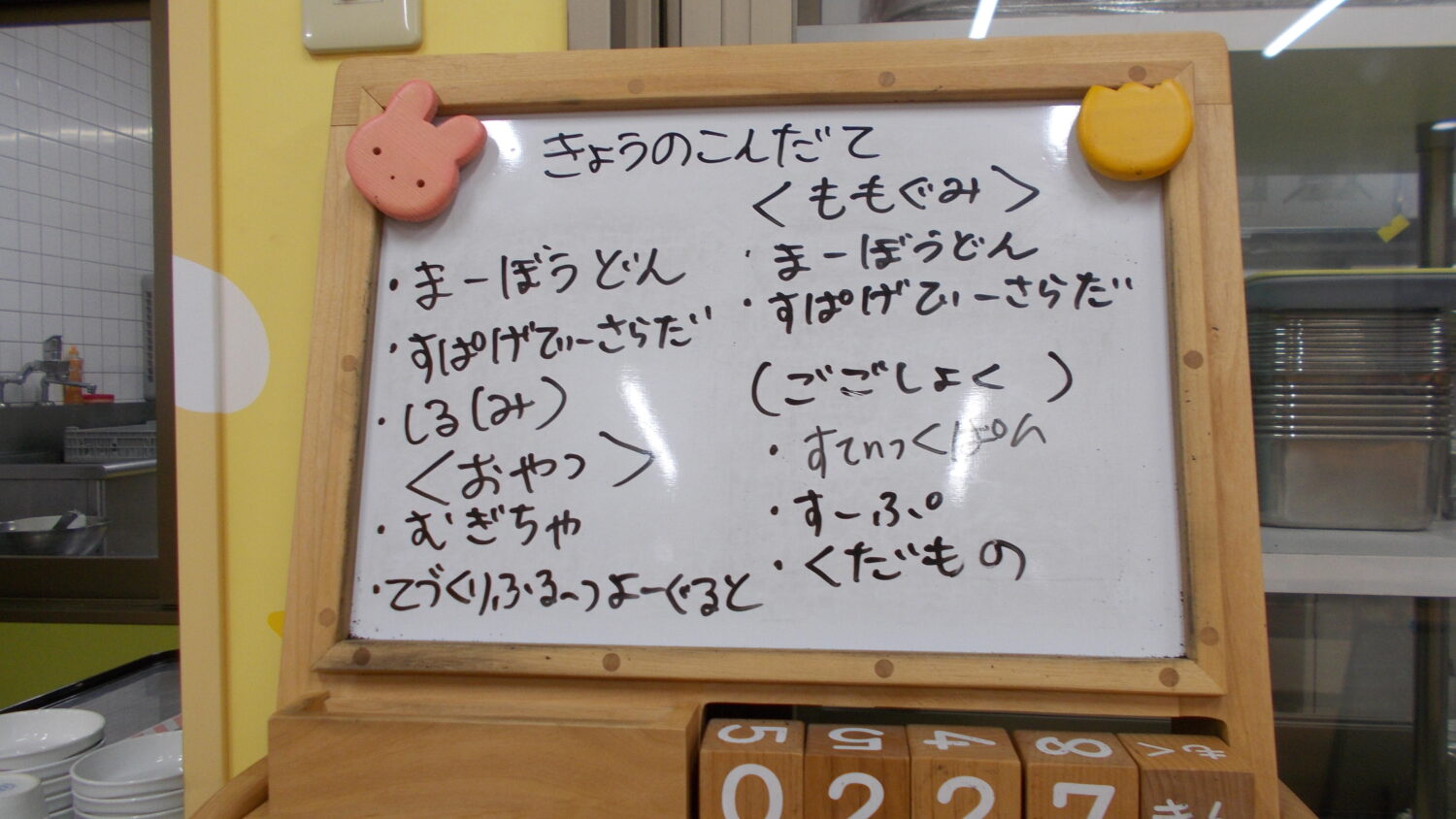献立に変更があります。もも組の午後食がスティックパンに変わっています。