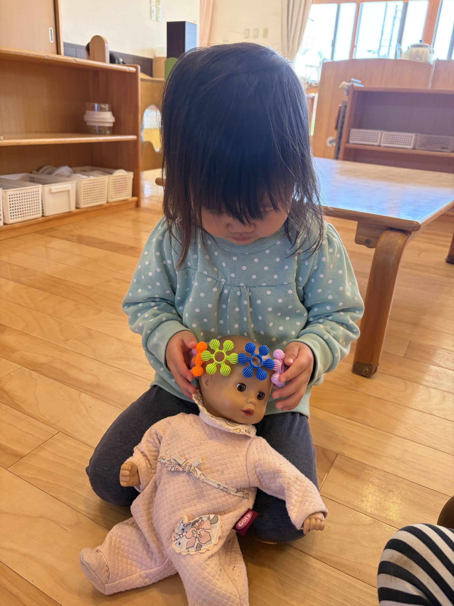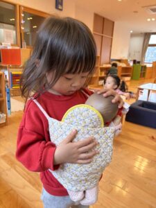 お人形遊びが大好きな女の子は、やさしく赤ちゃんのお世話中です👶