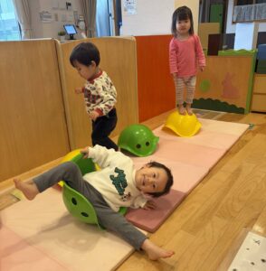 ビリボ遊びは、揺れに合わせて体を整えることで体幹やバランス感覚など姿勢を保つ力が育ちます。