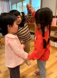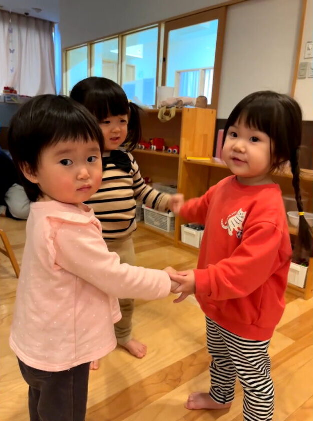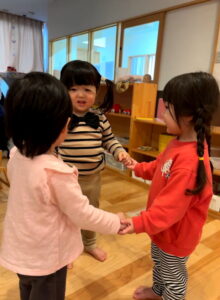 関わりといえば、女の子3人が手をつないで何かをやっています😊