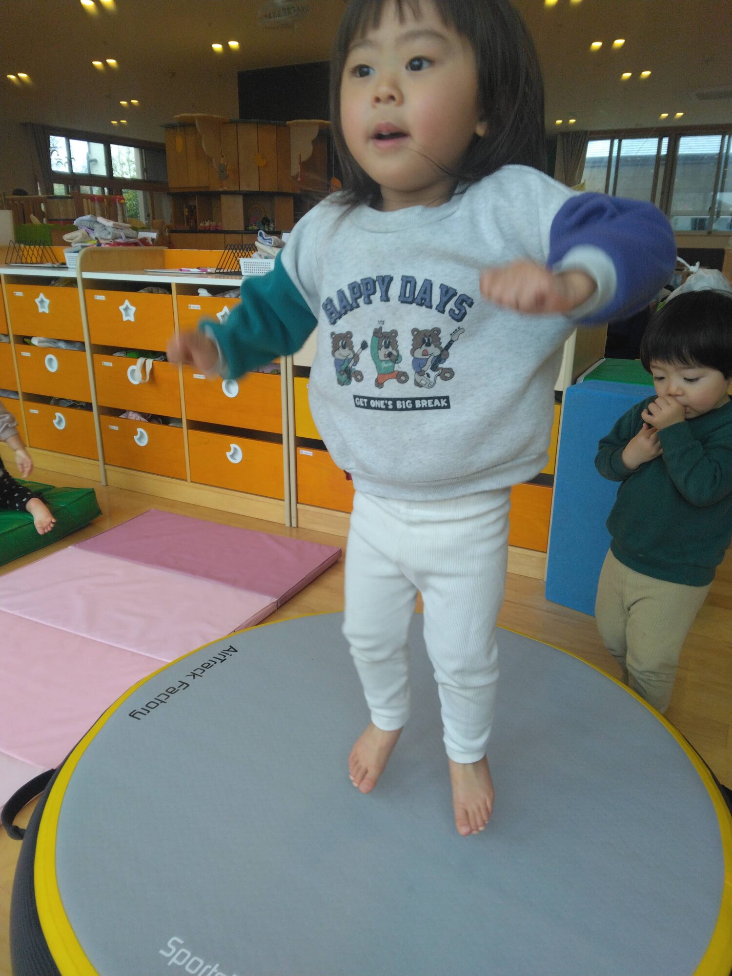 ジャンピングトランポリンで体を鍛えています!