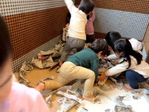 たくさん遊んだあとは、みんなで新聞紙を集めてお片付けもしました☺️