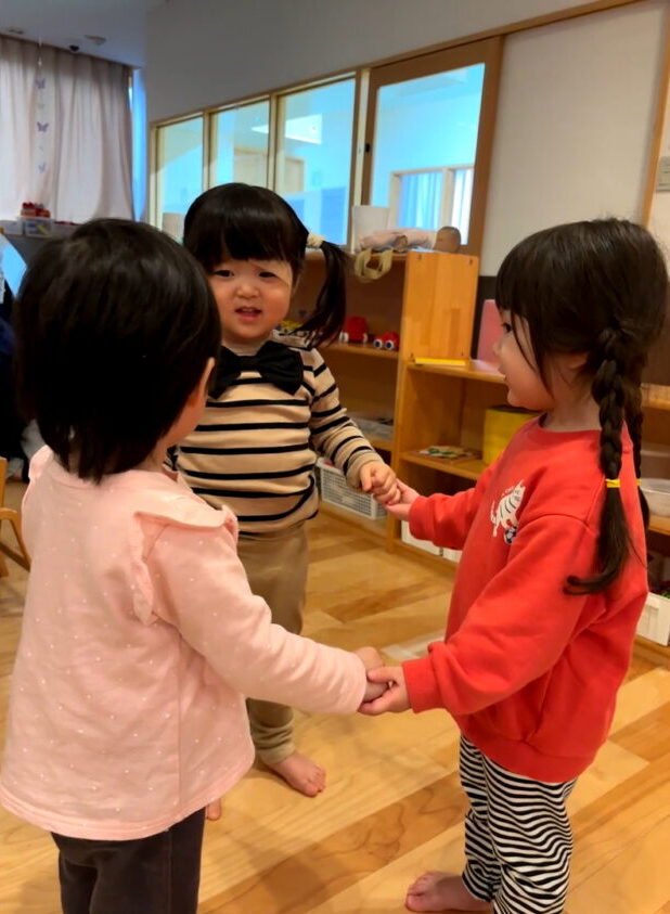 わらべ歌「なべなべそこぬけ」を歌いながら仲よく一緒に遊んでいました🥰