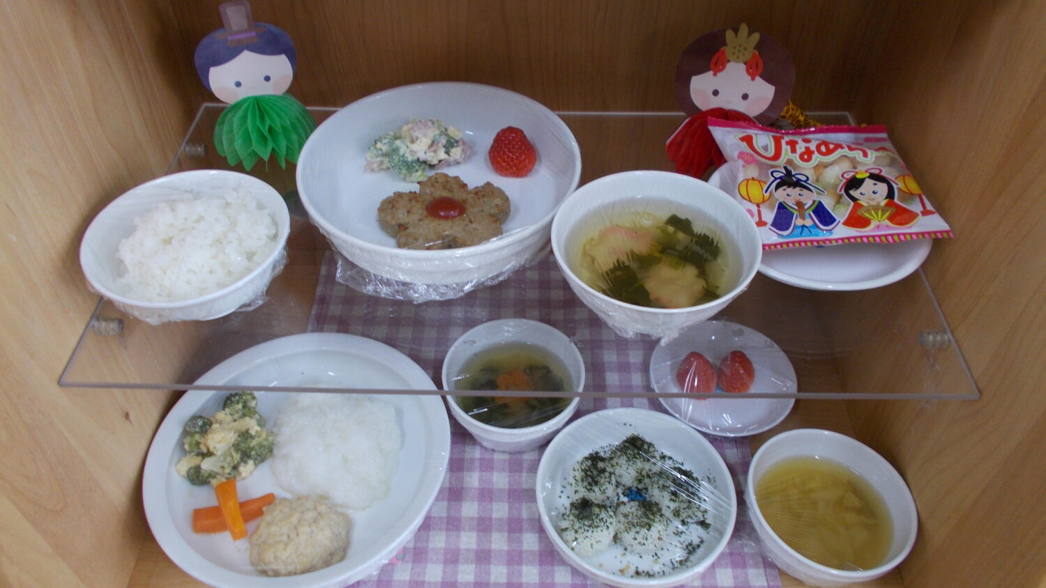 今日はひなまつりなので花麩のお吸い物を提供しています🎎✨