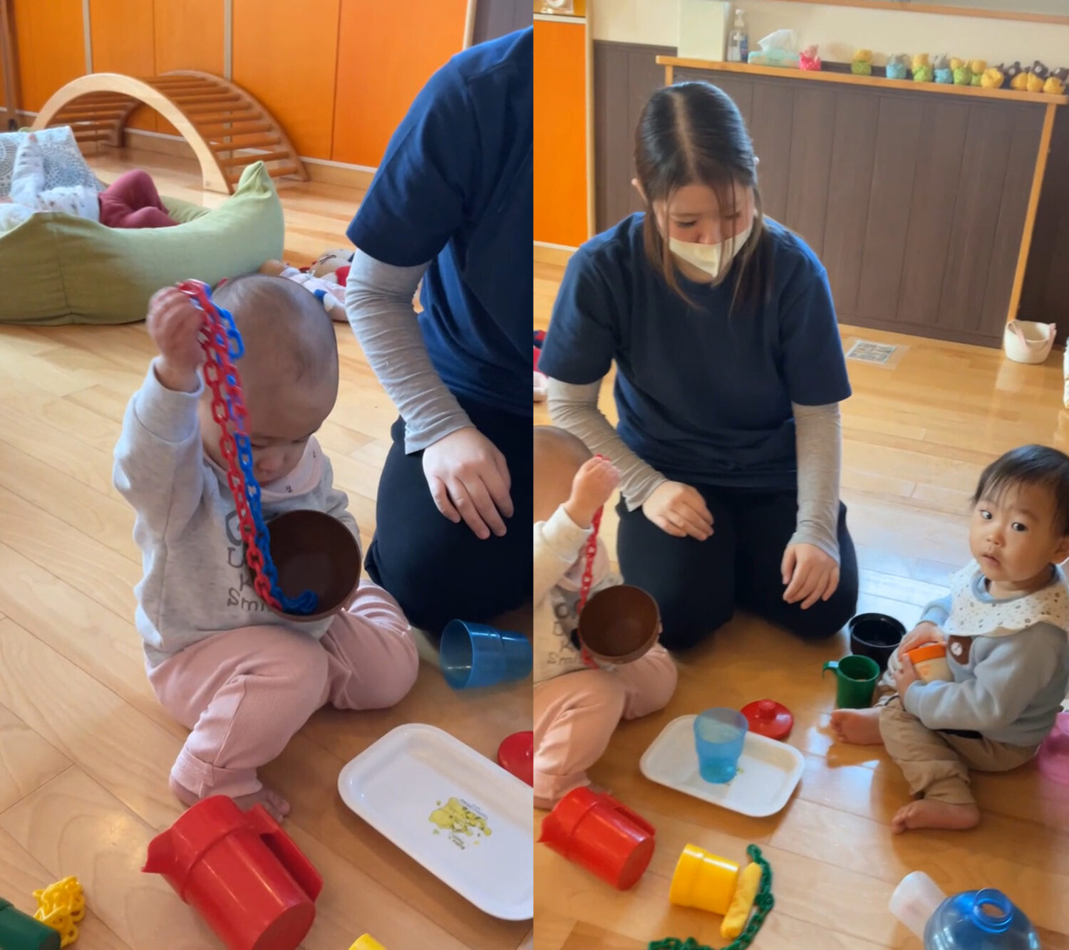 でも、こうした試行錯誤する姿を見るにつけ、「自分でやりたい!」という 言葉のない子ども達の” 思い ”が伝わってくるようです✨