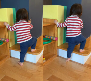体幹が安定すると、登る・またぐ時に上半身がぶれにくくなり、手で支える・足を上げる動きがスムーズになります。