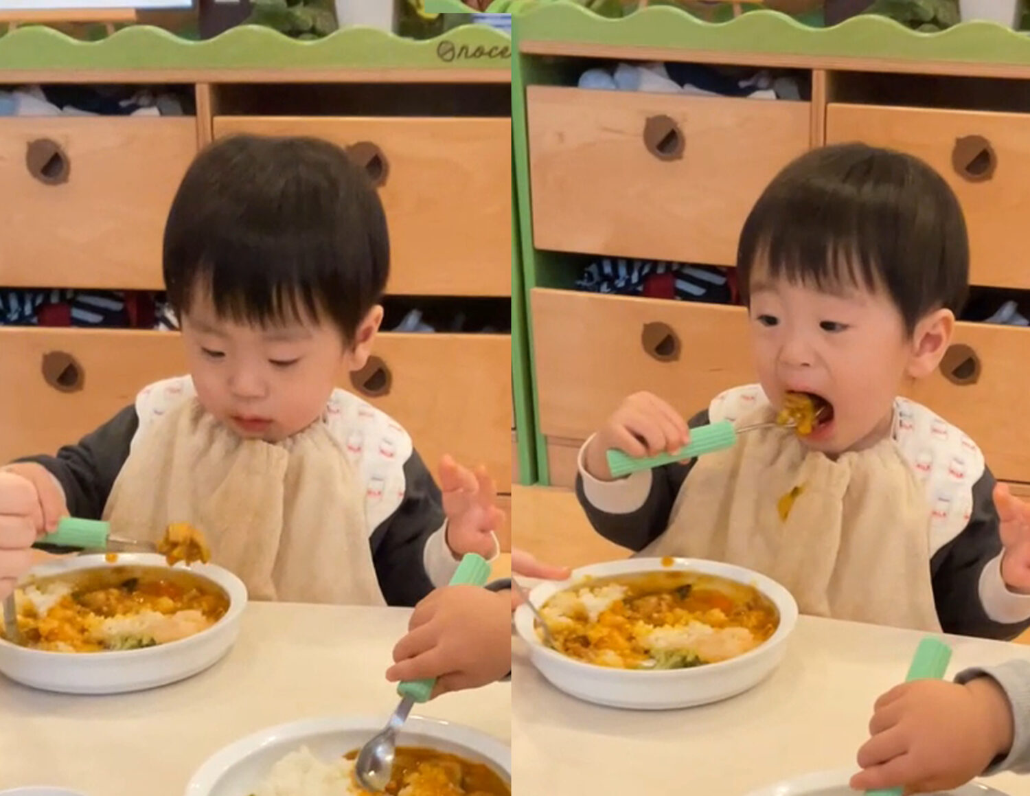 数ヶ月前は、あれほどサポートが必要だった子ども達も、今では自分でスプーンを使って上手に食べられるようになってきました。