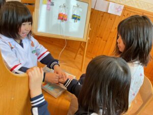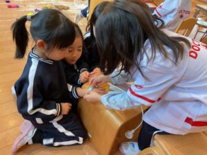 盛り上がる病院ごっこの場に、先生が楽しいアイテムを持って来てくれたよ。