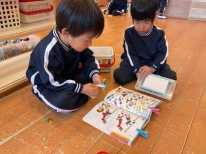 お手本を見ながら細かなパーツを根気よく組み上げています😃✨