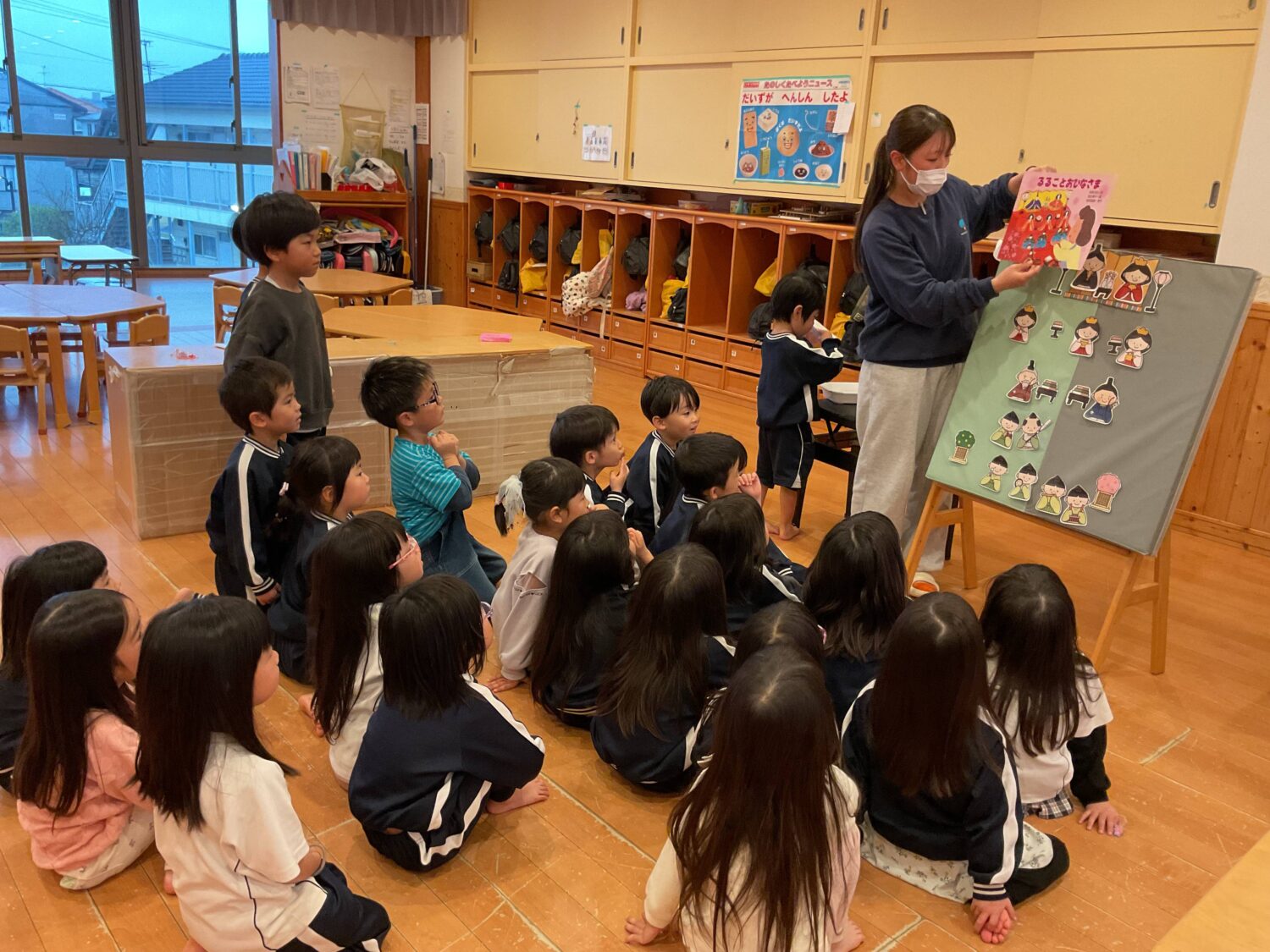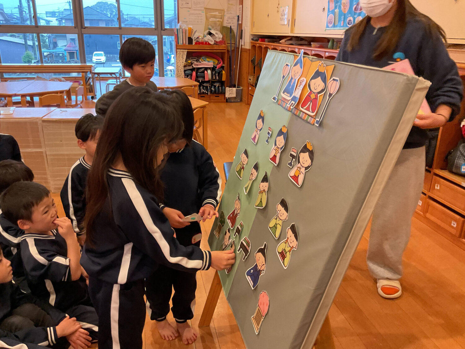 紙芝居を聞いた後、ひな人形の並べ替えクイズを楽しみました。
