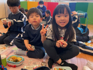 子ども達はお家からの手作り弁当が楽しみでウキウキ🥰