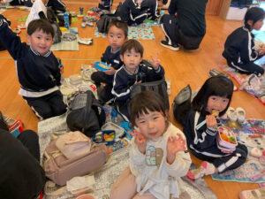 「お弁当すごいでしょー!」と沢山のお友達が見せてくれました。