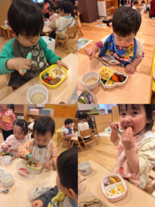 みんな朝からわくわくしており、『はやくおべんとうたべたーい🥄』と言いながらお昼を心待ちにしていました!